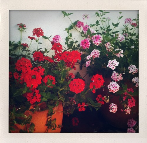 Que bom voltar a casa e começar pela casa dos pais. As flores da minha mãe estão lindas e estes potes de barro com sardinheiras estão no auge. Adoro viajar mas também adoro voltar. Amo a familiaridade e a intimidade. Sinto-me verdadeiramente em casa e feliz quando os meus estão todos bem. É o caso, graças a Deus.