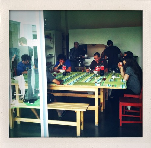 Aqui fica o filme do almoço de hoje, dia em que tivemos a visita dos amigos produtores argentinos do João Nuno Pinto e do Miguel Varela. Cenas como as de hoje repetem-se dia após dia na Garage, onde o movimento é permanente e muito criativo. Trabalhar numa produtora que faz cinema e publicidade tem umas rotinas muito próprias e muito originais.