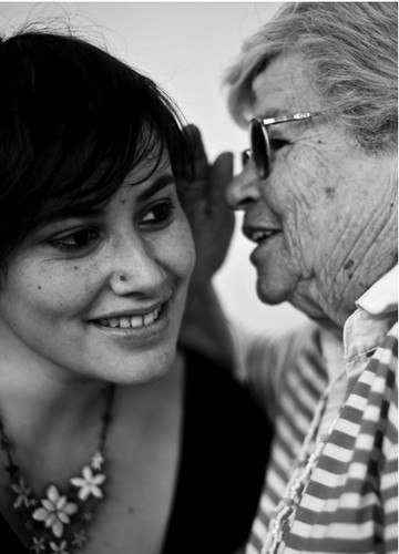 Susana António é a pessoa que faz equipa comigo no programa Entre Gerações, da Gulbenkian, em que cada uma de nós acompanha os sete projectos de forma diferente mas complementar. A Susana é designer social e para além de representar a Think Public junto da Gulbenkian, também faz outros trabalhos fascinantes que se podem ver no seu blog TomaLá, onde tem vídeos e fotografias dos objectos de design que cria para serem fabricados por artesãos muito especiais. Susana António tem um dom natural para trabalhar com pessoas mais velhas, com doentes e deficientes e, por isso, é adorada em todos os lugares onde deixa a sua marca. Tenho imensa sorte em tê-la nesta pequena-grande equipa e em poder fazer com ela as longas viagens que o Entre Gerações implica. Temos conversado imenso e quanto mais sei sobre os seus projectos, ideias e iniciativas, mais me apetece saber. Deixo aqui uma fotografia tirada pela fotógrafa Vera Marmelo à Susana, com uma das suas amigas das instituições a que está ligada. Percebe-se o talento natural da Susana.