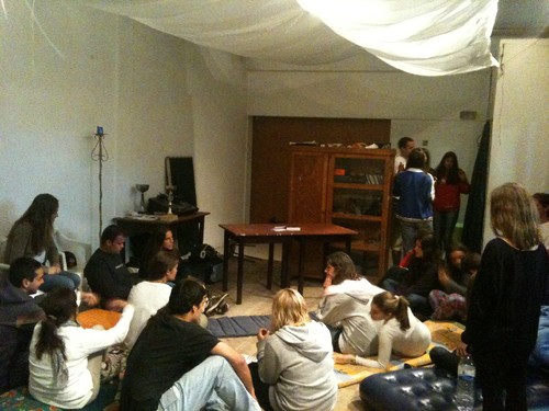 Durante uns minutos a confusão no ginásio foi total. A chuva caía lá fora com uma força brutal e a trovoada era assustadora mas, ao mesmo tempo, belíssima. Quando todas as coisas ficaram a salvo voltámos à conversa. Adorei estar com este grupo e adoro sentir que vamos juntos pelo caminho. Ainda que cada um de nós percorra caminhos diferentes, permanecemos juntos no essencial.