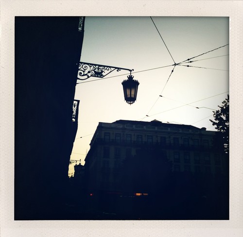 O contraste de luz e sombras desta polaroid faz com que a fotografia de uma esquina do Largo do Camões, em Lisboa, pareça uma ilustração. Um desenho que ilustradores como o Jorge Colombo e muitos dos Urban Sketchers fazem com muito mais talento do que alguma vez serei capaz de revelar numa fotografia. Em todo o caso gosto deste plano, dos detalhes do candeeiro e do cruzamento dos fios eléctricos no espaço aéreo do cruzamento do Camões com o Chiado e a Rua do Alecrim.