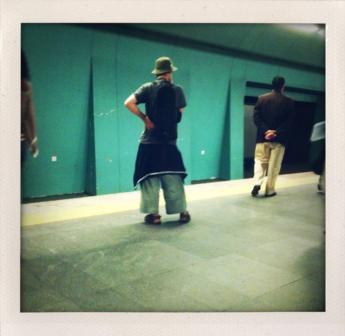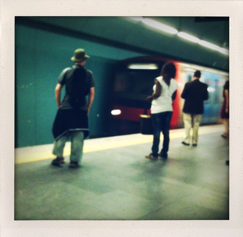Neste momento havia poucas pessoas na plataforma mas mesmo assim posso ficar horas distraída a olhar para os tipos físicos, para as atitudes corporais, para as raças e cores, para as roupas e estilos, para os que sorriem e para os que permanecem de cara fechada, para os que lêm (e os livros que estão a ler) e para os que vão de olhos fechados ou à conversa... enfim para as pessoas que gravitam à volta e entram no meu campo de visão.